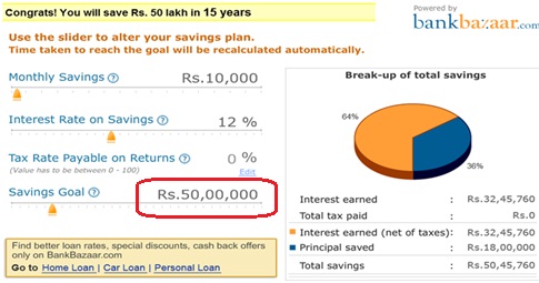 Look at the example below. If Shri starts investing Rs 10000 through monthly SIP in mutual funds for 15 years, he will save Rs 50 lakh assuming a growth rate of 10% per annum.